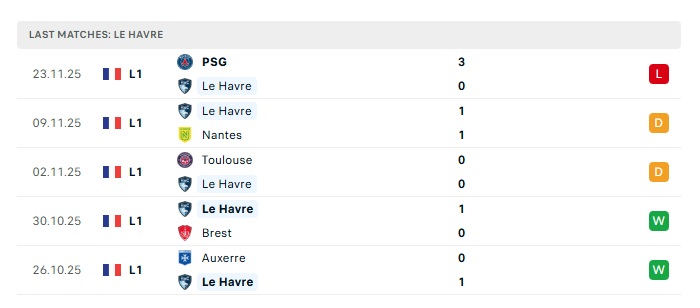 - Phong độ gần đây Le Havre