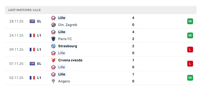 - Phong độ gần đây Lille