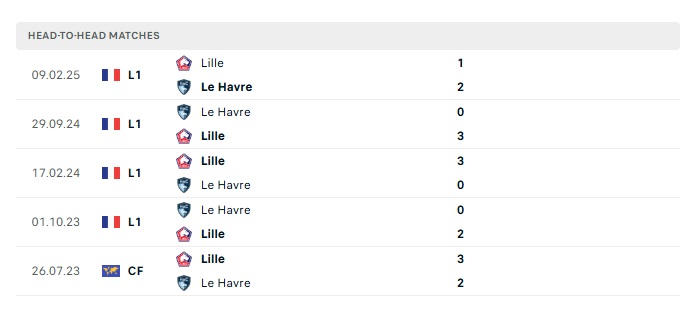 Lịch sử đối đầu Le Havre vs Lille