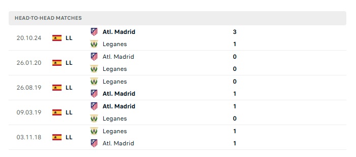 Lịch sử đối đầu Leganes vs Atl Madrid