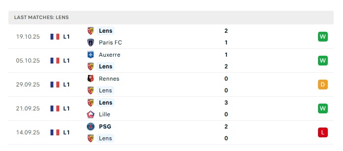 - Phong độ gần đây Lens