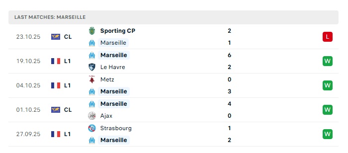 - Phong độ gần đây Marseille