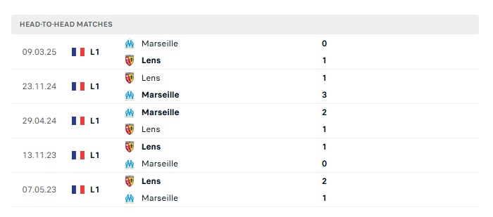 Lịch sử đối đầu Lens vs Marseille