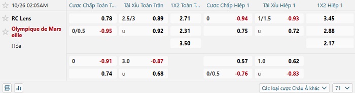 - Kèo tỷ số H1 Lens vs Marseille: 0-1