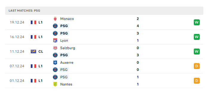 - Phong độ gần đây PSG