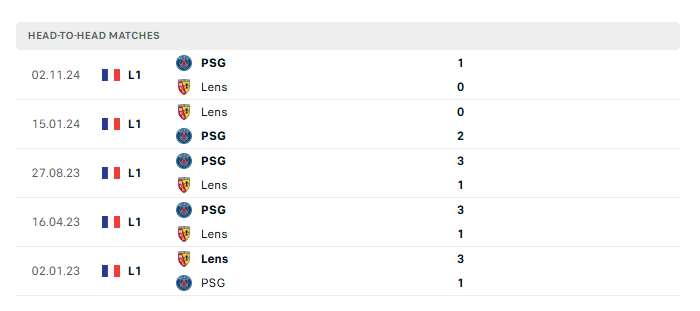 Lịch sử đối đầu Lens vs PSG