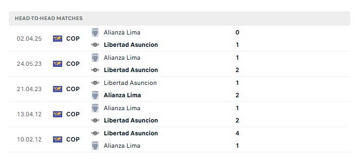 Phong độ gần đây Libertad vs Alianza Lima