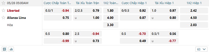 Soi kèo châu Á, kèo Libertad vs Alianza Lima