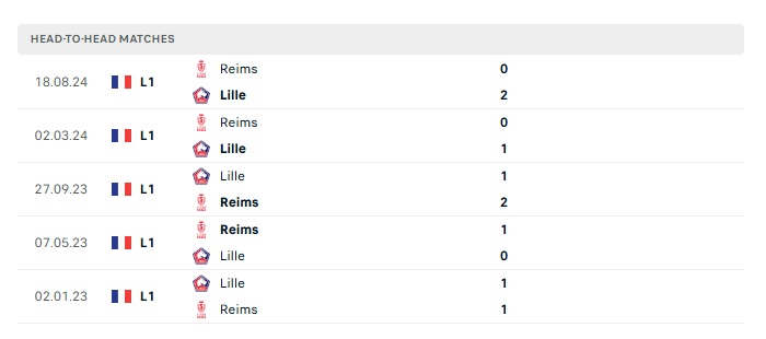 - Kèo tỷ số H2 Lille vs Stade Reims: 3-1