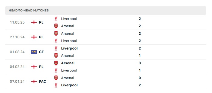 • Kèo tỷ số H2 Liverpool vs Arsenal: 2-1