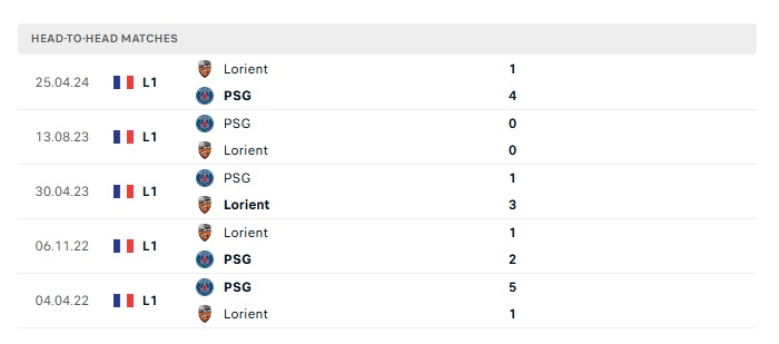 - Kèo tỷ số H2 Lorient vs PSG: 0-3
