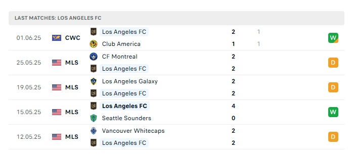 Phong độ gần đây Los Angeles FC vs Sporting Kansas