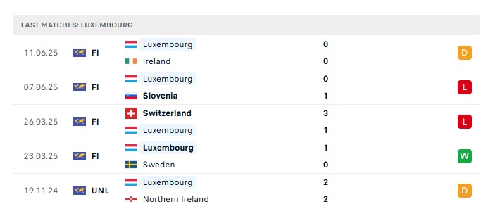 Phong độ gần đây Luxembourg vs Bắc Ireland