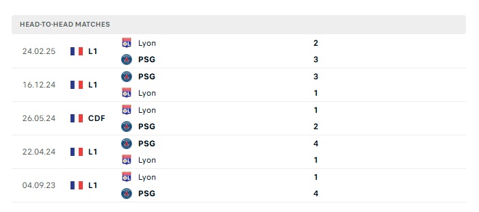 - Kèo tỷ số H2 Lyon vs PSG: 1-2