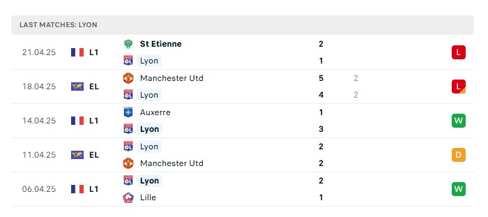 - Phong độ gần đây Lyon