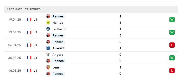 - Phong độ gần đây Rennes
