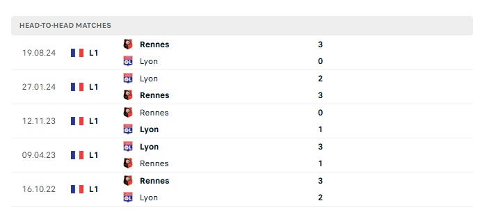 Lịch sử đối đầu Lyon vs Rennes