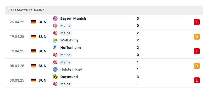 Phong độ gần đây Mainz vs Ein.Frankfurt