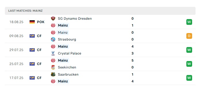 • Phong độ gần đây Mainz