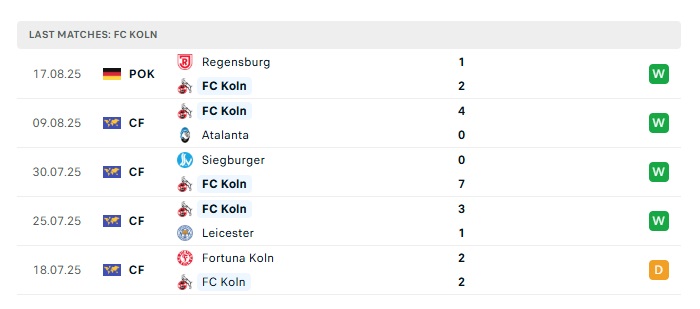 • Phong độ gần đây FC Koln