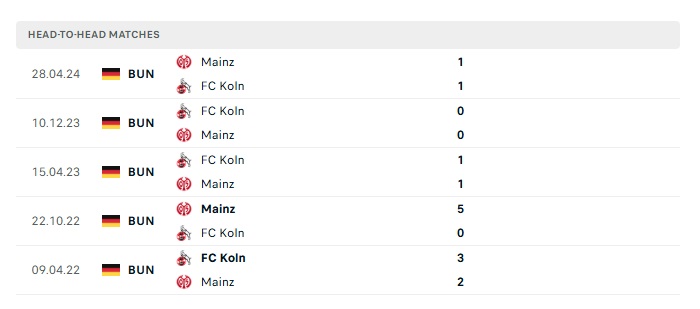 Lịch sử đối đầu Mainz vs FC Koln