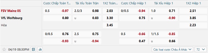 Soi kèo châu Á, kèo Mainz vs Wolfsburg