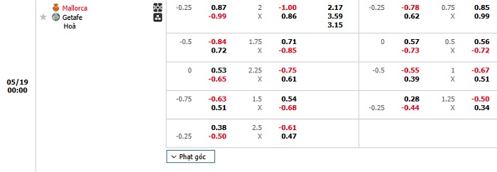 Bảng tỷ lệ kèo nhà cái Mallorca vs Getafe