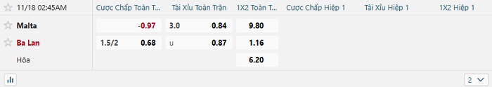 Soi kèo châu Á, kèo Malta vs Ba Lan