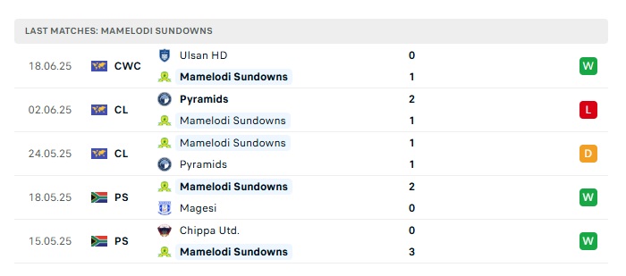 Phong độ gần đây Mamelodi Sun. vs Fluminense