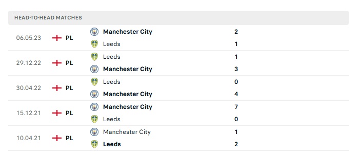 Hiện tại, chủ nhà Man City đang có kết quả thi đấu hoàn toàn áp đảo so với Leeds. Tính sau 12 vòng đấu đã qua, Man City đã có cho mình 22 điểm cùng vị trí thứ 3 trên BXH. Trong khi đó thì Leeds lúc này đang chỉ có được vị trí thứ 18 cùng với 11 điểm sau 12 vòng đã qua. Do đó, việc thầy trò Pep Guardiolo thắng áp đảo toàn diện đối thủ là một kết quả vô cùng dễ đoán.