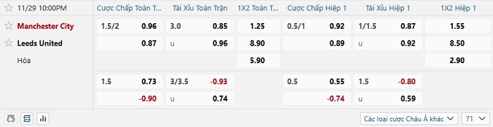 Soi kèo châu Á, kèo Man City vs Leeds Utd