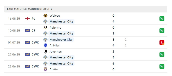 • Phong độ gần đây Man City