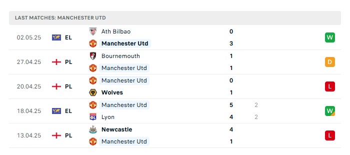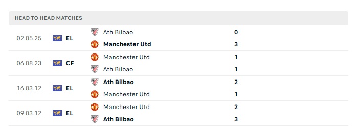 Phong độ gần đây Man Utd vs Athletic Bilbao