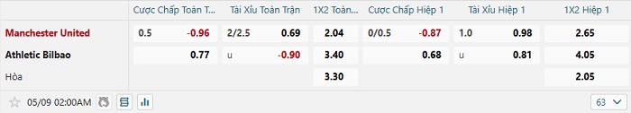 Soi kèo châu Á, kèo Man Utd vs Athletic Bilbao