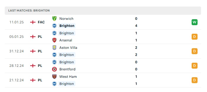 Tuy có chiến thắng trước Arsenal tại FA nhưng Quỷ Đỏ hiện tại vẫn đang trong giai đoạn cực kỳ tồi tệ. Theo các chuyên gia ghi nhận, Man United lúc này chỉ có được vị trí thứ 14 trên BXH với 23 điểm sau 20 vòng đấu. Trong khi đó thì Brighton vẫn thi đấu tốt khi đã có cho mình vị trí thứ 11 cùng 28 điểm. Như vậy, sẽ không có gì quá bất ngờ nếu như Quỷ Đỏ bị đối thủ cầm hòa trong ngày thi đấu hôm nay.