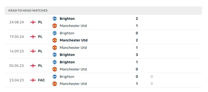 Theo những thống kê trên, Man United ngày hôm nay được cho là có khả năng sẽ thất bại trước Brighton. Nên biết, trong liên tiếp 2 lần gần nhất Brighton làm khách tại Old Trafford, họ đã toàn thắng cả 2 trận. Song song đó thì 3 trận sân nhà gần nhất của Man United vừa qua, họ cũng đã toàn thua cả 3. Do đó, đầu tư vào Brighton sẽ là lựa chọn vô cùng an toàn dành cho người hâm mộ ở trận đấu này.
