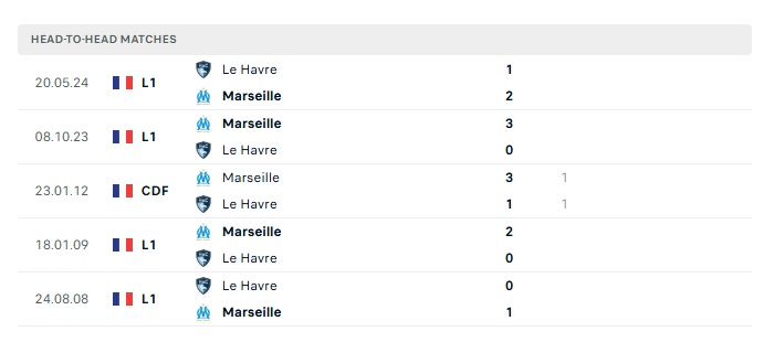Theo ghi nhận, phong độ thi đấu trong thời gian qua của Havre hoàn toàn thua kém so với đối thủ Marseille. Tính trong 5 vòng đấu gần nhất của Marseille, họ đang có cho mình 3 chiến thắng, hòa 1 và chỉ thua 1 trận. Trong khi đó thì 5 trận đấu gần nhất của Havre, đội bóng này chỉ có đúng 1 chiến thắng, còn lại là 4 trận toàn thua. Thế nên chủ nhà không khó để có cho mình 1 chiến thắng có cách biệt nhiều bàn trước đối thủ.