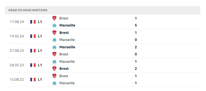 Lịch sử đối đầu Marseille vs Stade Brestois