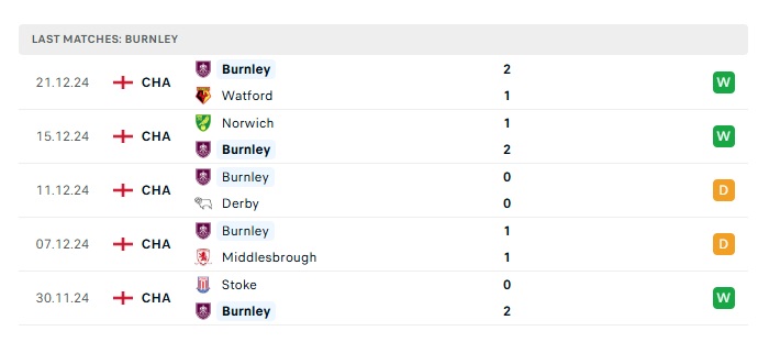 - Phong độ gần đây Burnley