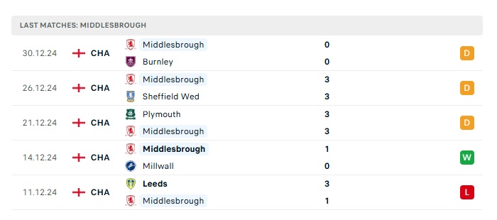 - Phong độ gần đây Middlesbrough