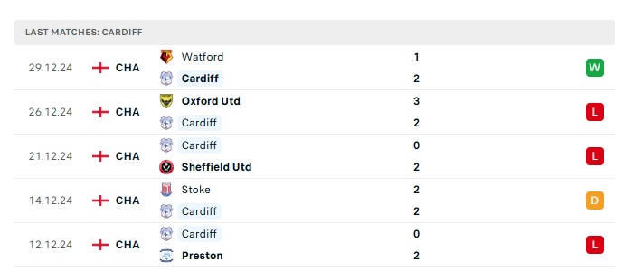 - Phong độ gần đây Cardiff City