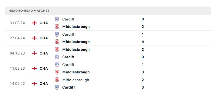 Lịch sử đối đầu Middlesbrough vs Cardiff City