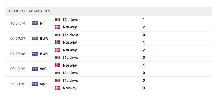 Hiện tại, phong độ thi đấu của hai đội không có sự chênh lệch nào quá lớn trong thời gian qua. Theo ghi nhận, Moldova hiện đang có cho mình 4 chiến thắng, 1 hòa và 1 thua trong 6 lần ra sân gần nhất. Trong khi đó thì Na Uy lúc này cũng có 4 thắng, 1 hòa và 1 thua trong 6 trận đã qua. Như vậy, các chuyên gia cho rằng để có chiến thắng cách biệt từ 3 bàn trở lên sẽ là một nhiệm vụ rất khó với Na Uy.