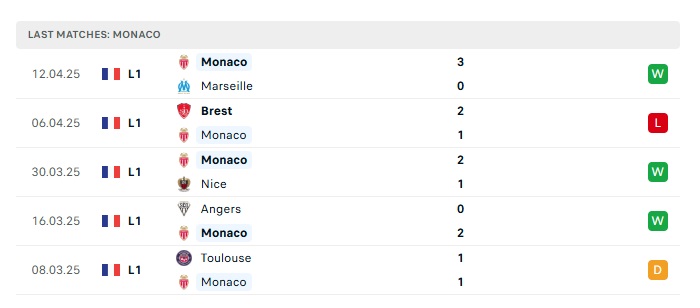 - Phong độ gần đây Monaco