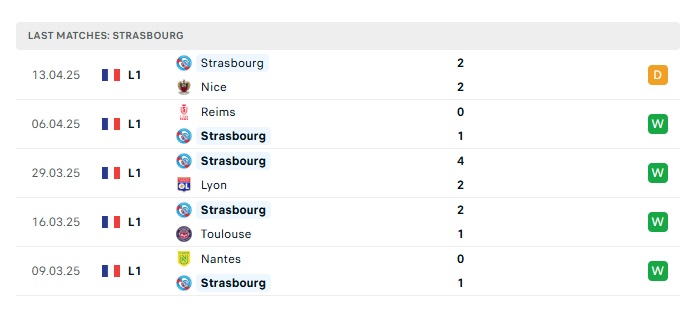 - Phong độ gần đây Strasbourg