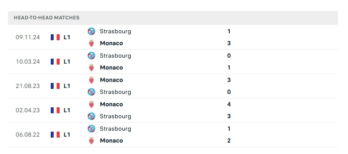 Lịch sử đối đầu Monaco vs Strasbourg