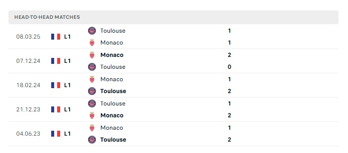 • Kèo tỷ số H2 Monaco vs Toulouse: 2-1