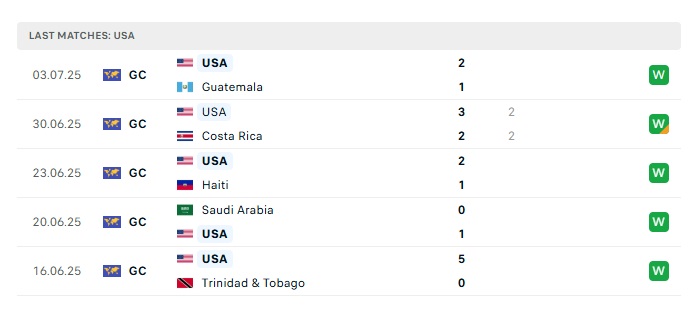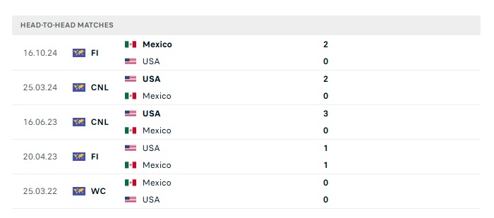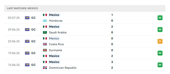 Phong độ gần đây Mỹ vs Mexico