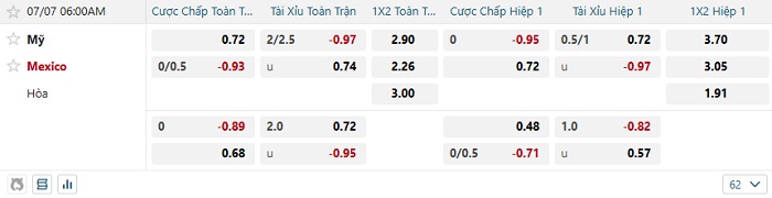 - Kèo tỷ số H1 Mỹ vs Mexico: 0-0