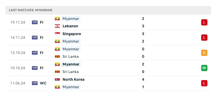 Tất nhiên, Myanmar từ rất lâu đã luôn là một kẻ lót đường tại giải đấu mà họ tham dự và năm nay cũng không ngoại lệ. Theo ghi nhận trong 10 trận gần nhất của quốc gia này trên toàn đấu trường, họ chỉ thắng 1, hòa 2 và thua đến 7. Trong khi đó thì Indonesia dù còn nhiều bất cập nhưng họ dần có những kết quả tích cực với 2 thắng, 3 hòa và chỉ thua 2 trong 7 trận đấu gần nhất. Như vậy thì đội khách ngày hôm nay được tin rằng sẽ có ít nhất là 1 chiến thắng tối thiểu trước đối thủ.